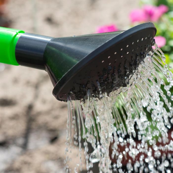 3. Tenez fermement l'arrosoir et versez l'eau de manière uniforme sur les plantes.